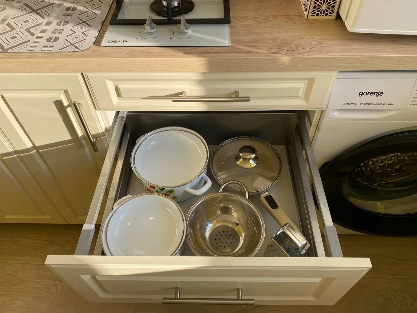Плита, микроволновка, холодильник и чайник — всё под рукой!